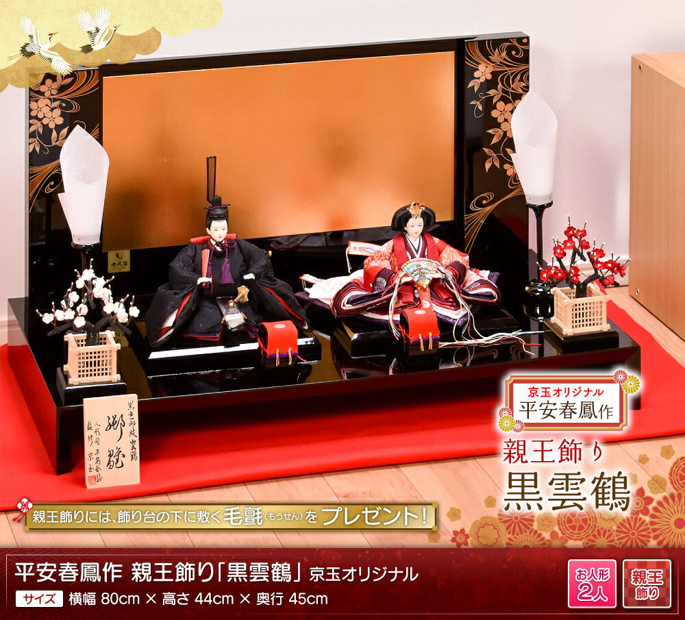 【雛人形・親王飾り】平安春鳳作 黒雲鶴 間口80cm【雛人形 ひな人形】【初節句・桃の節句】